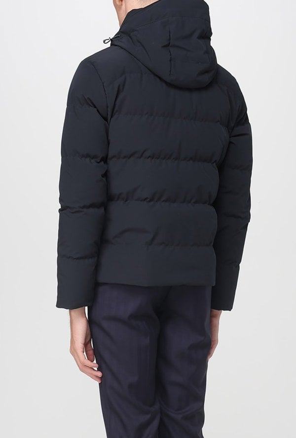 Designed to take on city errands and outdoor adventures with style, this jacket is crafted from special Typhoon Re-4X4 Stretch, engineered to flex in four directions so that it naturally moulds to your every movement. Its elegant silhouette is padded with Re-Goose Down, boasting a fill power of 650 whilst giving a new life to recycled goose and duck down. Re-Goose Down uses less water and energy than traditional fibres, and is made without the use of harmful chemicals. The inside reveals a shiny lining, while the smartphone pocket is isolated with E. M. W. protection technology to provide a shield against harmful electromagnetic waves.