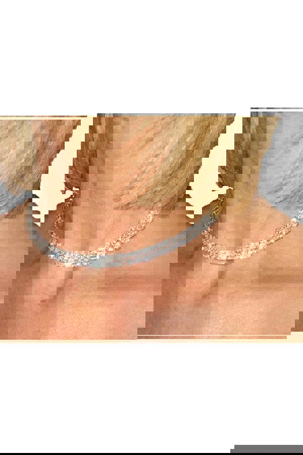 2 Row Diamante necklace from Paulo Due. Put round the neck as you would a necklace and fasten with the lobster claw and link chain to secure in place. The diamantes crystals go all round the statement choker with a small opening at the back. This rhinestones on the nickel free necklace shine in the light with movement. Width of inner diameter = 4" (10. 5cms). Circumference/Length of necklace = 12" (31cms). This costume jewellery piece looks great with anything from a little black dress to a blouse and jeans.