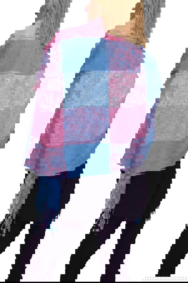Add a touch of elegance to any outfit with this lightweight women's jacquard scarf. Crafted from soft 100% viscose, it features a stylish colour-block square pattern with a paisley print and a subtle sheen for a refined, pashmina-inspired look. Generously sized at 72" x 27", she can wear it as a shawl, wrap, or scarf, draping beautifully over her shoulders. Finished with delicate tassel ends, it's perfect for everyday wear or evening occasions. A versatile, stylish accessory that also makes a thoughtful gift for her - ideal for birthdays, weddings, or Christmas.