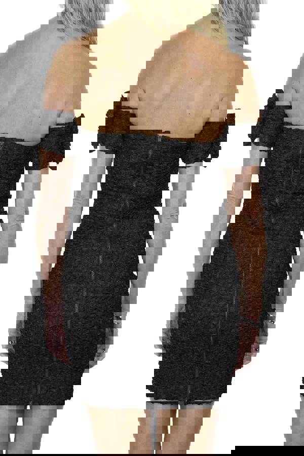 This ladies strapless dress is made from a soft satin feel material with a crinkle effect to give you an indulgently soft feel that also brings you comfort for the duration of wear. The bandeau mini dress has a length from the bust down of 25" (64cms). It has a back black zip for easy fastening. The bust is lightly padded for structure. A thin silicone rubber strip lines the entire inside top seam of the dress to prevent it from falling down. The off the shoulder straps have bow detail on the arms which are attached to the dress, this provides support to keep the dress in place. This short dress features a semi sweetheart neckline. The inside of the dress is lined with a smooth material which is soft to the skin.