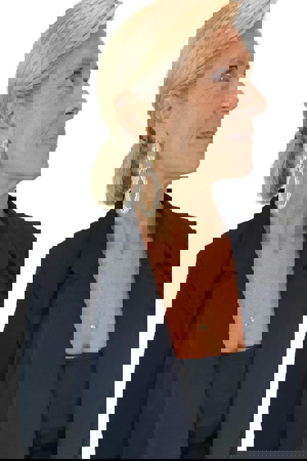 These women's fashion earrings are for pierced ears with a friction back post to secure the earring in place. The 2 oval shape hoops are joined together to allow the lower hoop to swing. There are diamante crystal stones all over that sparkle in light with movement. Adorned with clear rhinestones for a bright and shiny look while its intricate design portrays an expensive look. They are nickel free to prevent allergies. These earrings have a full hanging length of 9cms and width of 3cms. Fashion Earrings are a great accessory to your evening outfit. They are also a great gift idea for her this season. Due to hygiene reasons, we are unable to accept returns on this item.