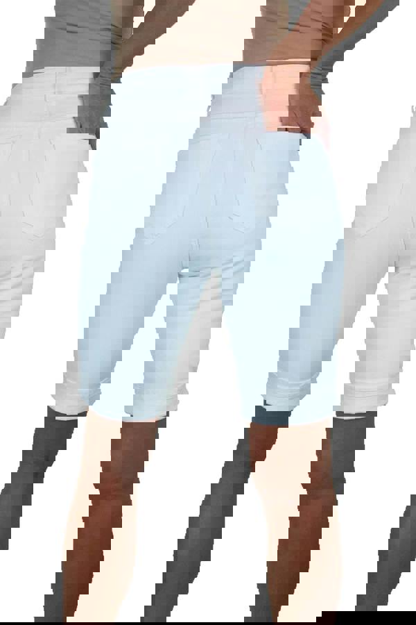 Paulo Due Womens Denim Shorts. PLEASE NOTE - Due to the washing process, Black and White Colours have slightly tighter fit than the blue denims. Denim shorts are essential for your summer wardrobe as they are perfect for those sunny summer days, pair with a casual tee and trainers for a casual look. The Bermudas high waisted slim fit design slims your tummy and structures your silhouette. The ladies shorts feature a straight leg making them an essential for your summer wardrobe. They have a turned up stitched hem with a inside leg measurement of 9. 5" (24cms) sitting just above the knee. With different colours and shades to choose from, there is something for everyone!
