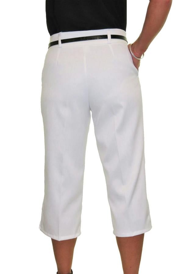 Serve up a statement style wearing our cropped shine trousers. We designed them to be smart with a tailored look. Made from a slightly stretchy material to fit accordingly and comfortably to your unique shape. There is a slight sheen to the fabric and has an expensive feel. These are a straight leg fit which allow a more roomy loose feel. The ¾ length pants come with a FREE skinny belt. The bottom of the loose leg has an open slit. This cropped capri has an inside leg measuring 19"-19. 5" (49cms-50cms).
