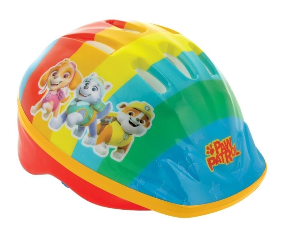 Keep your children safe when scooting, cycling or skating, with this Paw Patrol Safety Helmet. The Paw Patrol graphics will be a familiar sight to your children, as it features the Paw Patrol crew as seen from TV! The adjustable straps allows for a snug and secure fit, and also features a quick release buckle. It has a well ventilated multicoloured shell and soft pads inside the shell, to provide a comfortable ride.