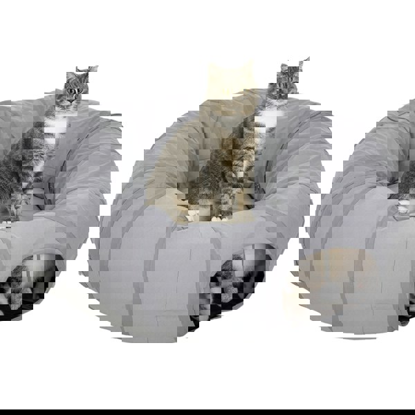 ● Colour: Grey ● Material: Suede Fabric, Metal Wire, PP Cotton ● Overall Dimension: Φ90 x 27H cm ● Tunnel Dimension (Each): Φ27 x 100L cm ● S-shaped Tunnel Length: 185L cm ● Hole Dimension: 24W x 15H cm ● Cushion Dimension: Φ52 x 5D cm ● Maximum Load: 5 kg ● Item Label: D34-012V70GY
