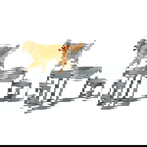 Keep dogs active and engaged with this three-piece PawHut agility set, featuring a balance bridge, pause platform and training stairs. Suitable for beginners and experienced pets, the adjustable design allows you to tailor each session to their skill level. Made from solid fir wood with a sleek grey finish, it supports medium and large dogs up to 40 kg. A great way to build confidence, coordination and fitness in a fun, structured way.