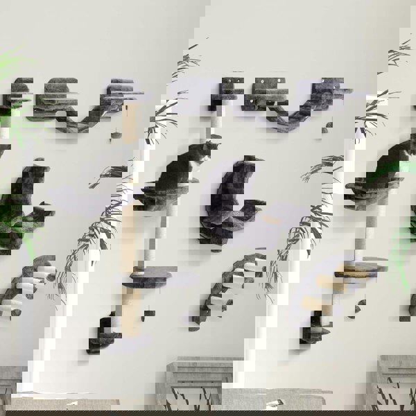 Having cats with limited space is no longer an issue, thanks to this clever PawHut cat shelf set. Utilising your wall and freeing up floor space, it features climbing shelves, ladders and a cosy perch – all covered in soft plush for extra comfort. A space on the wall for cats to be their true selves, they'll play, jump, scratch and relax, satisfying their every need. Transform any space into a wonderful pet paradise, elevating your cat's way of life.