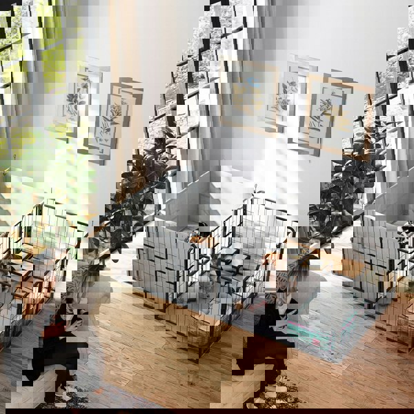 Enjoy the ease of reshaping it into multiple configurations like a rectangle or L-shape, crafted from robust steel with a two-room design for mommy dog's easy access while keeping puppies safe.