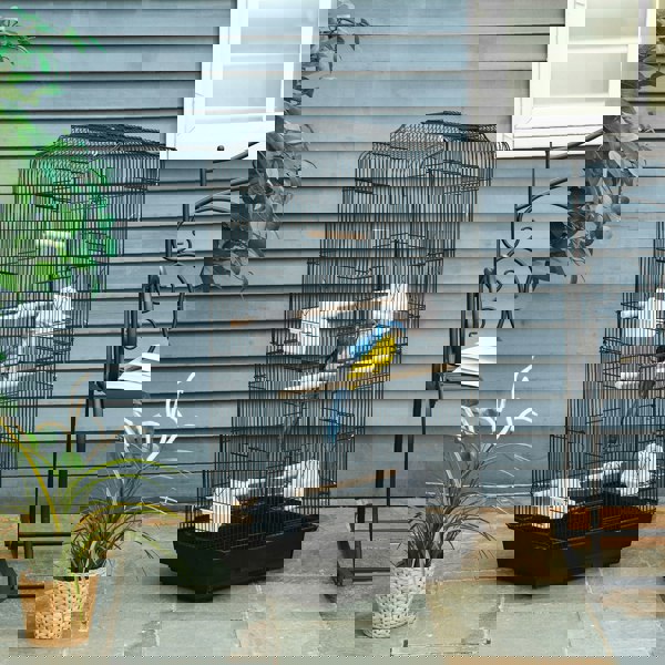 A spacious PawHut bird cage, featuring three wooden perches, four plastic food containers and a swing to provide an entertaining and comfortable home for birds. Two large front doors allow easy access, while the ten small doors enable feeding, cleaning and interaction. The slide-out tray at the bottom makes it easy to clean, keeping the space tidy and comfortable for eating, playing and relaxing.