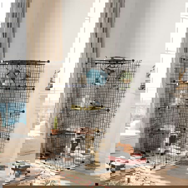 Discover endless fun for your feline friend with the PawHut Cat Cage! This spacious four-tier cat run offers a 1. 1m² activity centre, creating a delightful catio where your cat can play and lounge. customise the space with 63 DIY panels and engage through five access doors. Suitable for cats under 4kg, it's a wonderful retreat for your pet's comfort and joy.