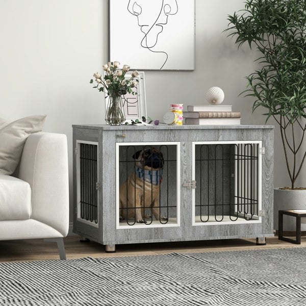 The PawHut Dog Crate Furniture combines a spacious dog cage with a side table design, helping keep pets safely in place while fitting neatly into your home. A cushioned bottom adds comfort, while the steel wire construction supports ventilation and allows your pet to look out, helping them feel more at ease in their own space.