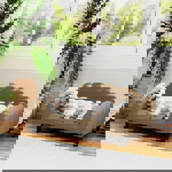 Upholstered in soft terry-style fabric, this cosy cat chair features a supportive backrest and padded armrests, giving your pup a secure and relaxing place to unwind.