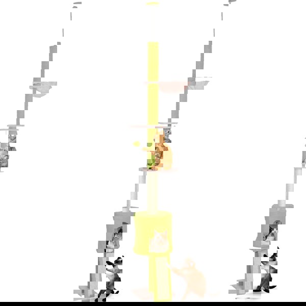 For cat owners with limited space, this PawHut floor-to-ceiling cat tree is for you. Adjustable between 220-240 cm, it creates a stable, vertical playground for 1-2 cats. They can jump between platforms, relax in a cosy house, scratch sisal posts and play with a dangling toy. Covered in plush teddy fabric, it offers a warm, inviting spot for daily comfort and joy.