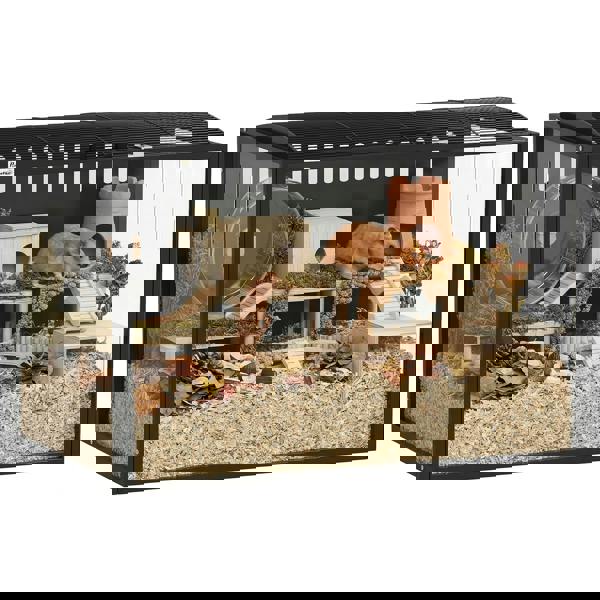 When a small pet feels cramped, it paces, kicks bedding and you're left with restless nights and a stale room. PawHut Hamster Cage creates a roomy single-level habitat for your DIY zones like wheel, hideout, water and sand bath. A wide top door with handle makes feeding and quick tidying calmer for new owners. The arched ventilated mesh lid boosts airflow to help cut dampness and odours.