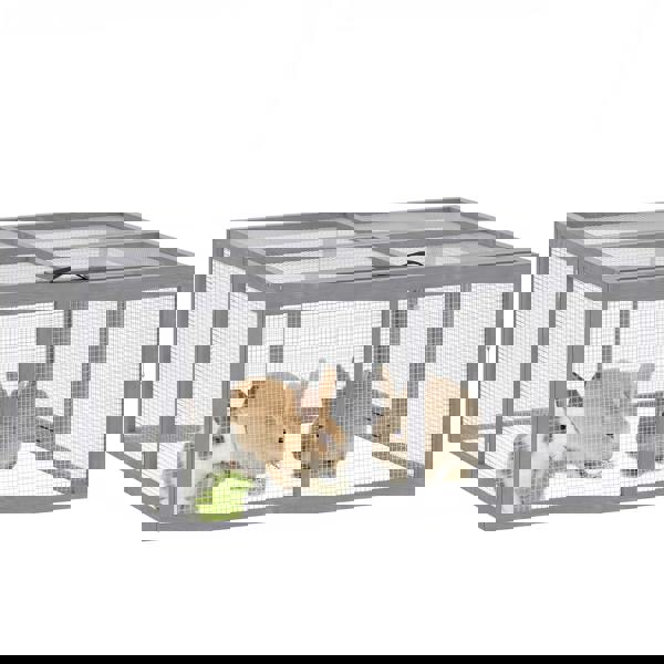 Hop into comfort with the PawHut small animal hutch! Designed for both rest and play, this spacious haven features a cosy enclosed area for peaceful naps and a secure open run for exploring and hopping around. Whether your furry friends are lounging or staying active, this thoughtfully designed hutch provides a warm, secure and engaging space for rabbits, guinea pigs and other small pets to enjoy.