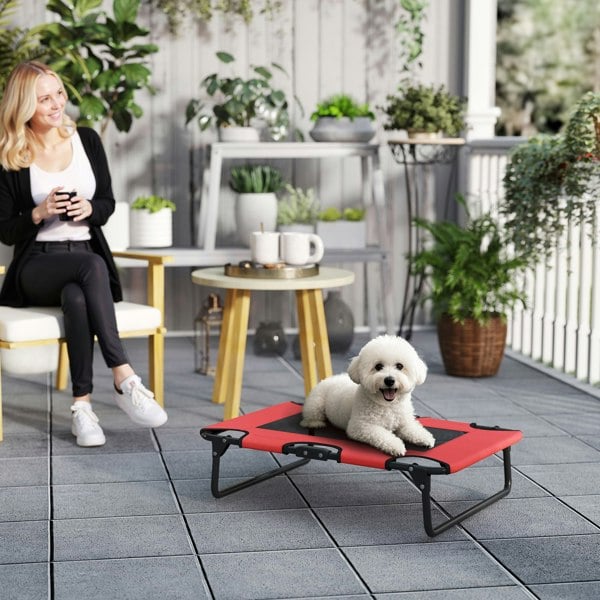 Keep your furry friend comfy year-round with the PawHut Elevated Dog Bed! Its raised design with 18 cm feet ensures moisture-proof comfort, while the breathable texteline mesh promotes air circulation, offering a cool summer and cosy winter.