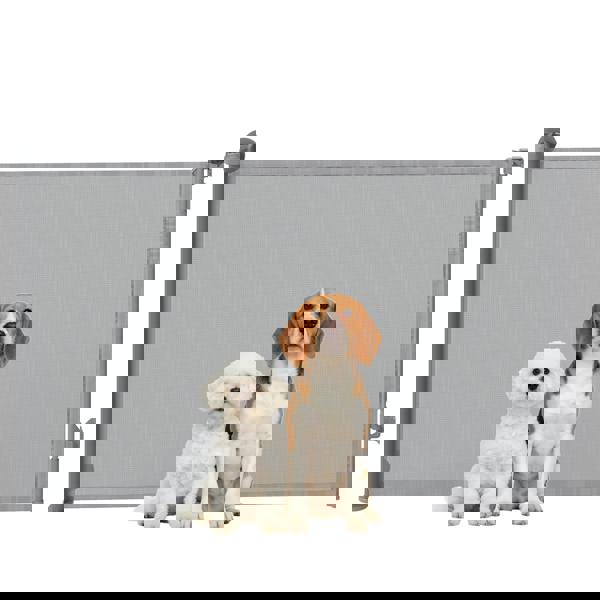 Struggling to keep your curious pup out of the kitchen while your hands are full? Juggling groceries and a clumsy, fixed gate only adds to the chaos. The PawHut retractable dog gate offers a seamless solution. The stair gate retracts for an open-plan feel and secures with a simple one-handed motion, blending security and convenience for a truly harmonious home.