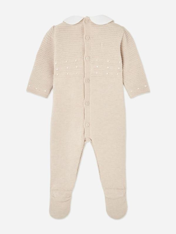 This baby boys babygrow by Paz Rodriguez comes in a subtle beige cotton knit. Made in Spain, it reflects the brand’s Spanish design heritage with careful detailing and a clean, understated look.