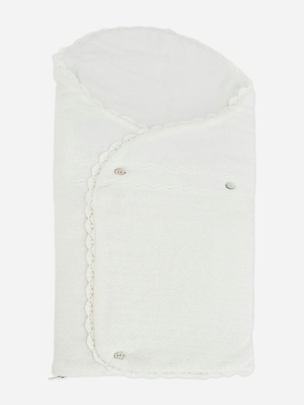 From Paz Rodriguez, the Baby Cotton Embroidered Nest in Ivory is a softly textured baby nest designed with a wrap-around shape for a cosy, secure feel. Part of the brand’s “Peace” Collection, it’s crafted in 100% cotton and finished with delicate embroidered detailing for a timeless look that suits any nursery.