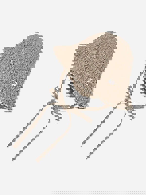 This baby girls’ hat by Paz Rodriguez comes in a beige colourway for a clean, understated look. Made in Spain, it uses a cotton and cashmere blend for a soft handle and a warm finish, suited to cooler days.