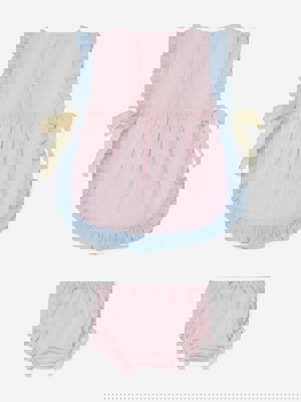 From Paz Rodriguez, this baby girls’ cotton Dress with Knickers in pink brings a traditional look to warm-weather dressing, with a complete set designed to feel as good as it looks. Crafted in Spain, it pairs a delicate pink tone with a soft, breathable cotton finish, making it a comfortable choice for all-day wear.