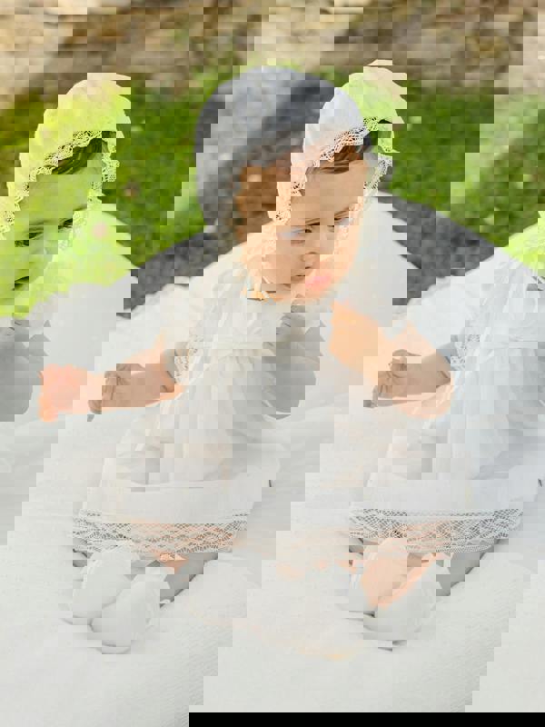 This baby girls ceremony dress by Paz Rodriguez comes in ivory for the SS2026 season. Made in Spain, it offers a neatly tailored finish suited to special occasions and celebrations.