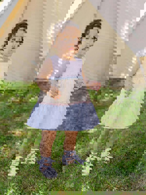 This Paz Rodriguez baby girls’ dress is a charming choice for everyday wear, combining traditional styling with a modern finish. Designed in a chalk pink woven muslin with plumeti detailing, it brings soft texture and delicate interest to a newborn wardrobe. A ruffled lace collar adds a classic touch, while the flared cut creates a gentle shape that’s easy to wear.