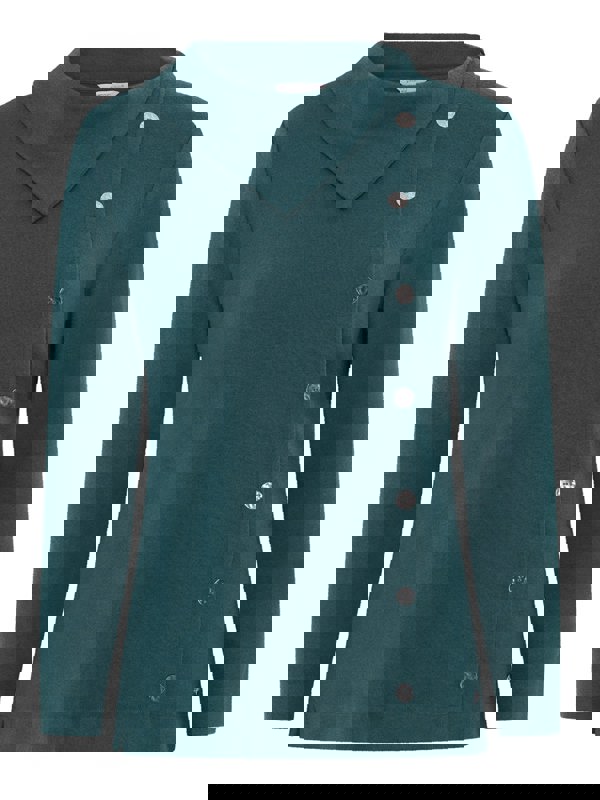 Both classic and contemporary, our peacock split cowl neck top features button detail running down the front to hem, side slits and also comes with metal tab at the hem.