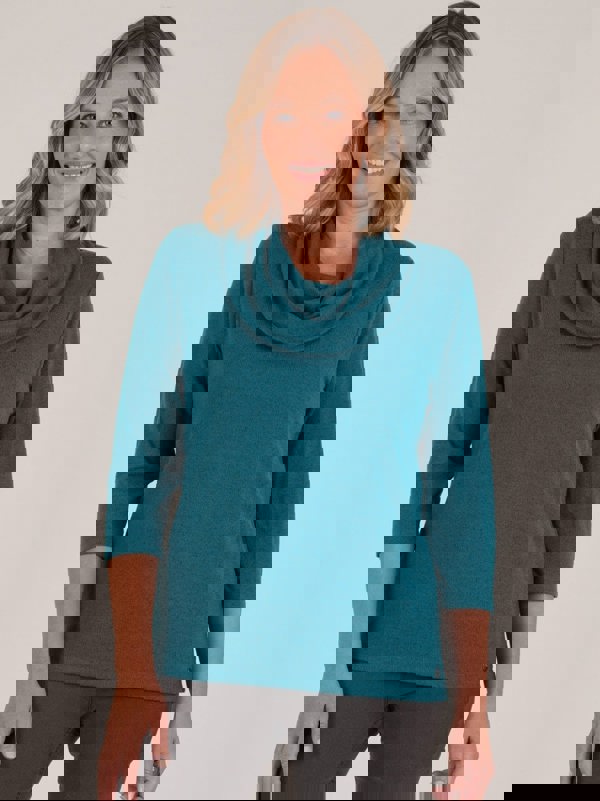 Our penny plain essential dragonfly cowl neck top features side slits, a metal tab and 3/4 length sleeves. The prefect top for your autumn wardrobe.