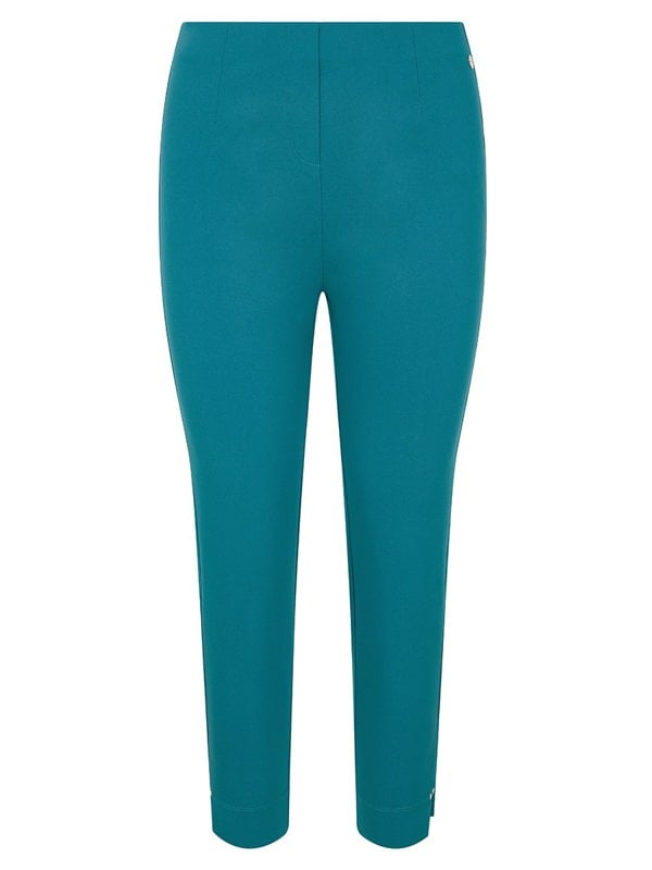 A summer essential! The teal cropped bengaline trousers feature an elastic waistband and back patch pockets and side slits. Pull on with pure comfort, easy to wear and stylish.