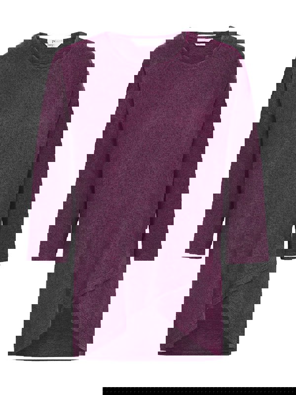 This soft brushed, crew neck jersey is a perfect everyday piece. This top feature three quarter length sleeves, a front cross over asymmetric hem in an amethyst.