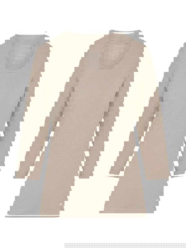 The perfect wardrobe essential. The scoop-neck top comes in a beautiful Cloud colour and features three quarter length sleeves, a double layer front and a metal tab.