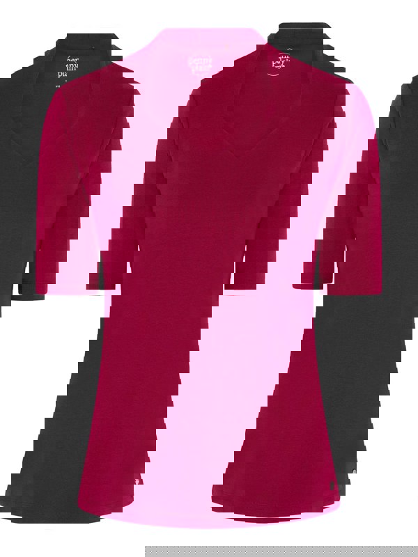 The perfect wardrobe essential. Our raspberry sweet-heart neck top features half length sleeves, a double layer front and a metal tab.