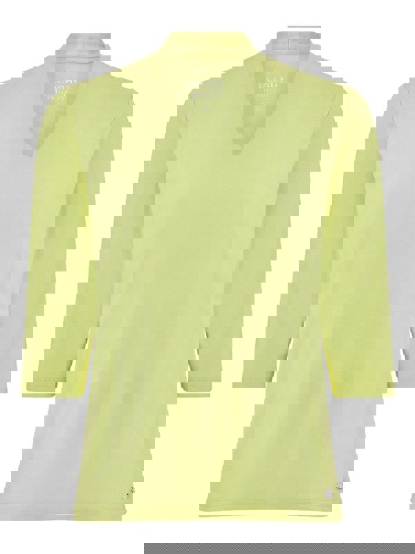 The perfect wardrobe essential. This top comes in beautiful kiwi and features three quarter length sleeves, a double layer front and a metal tab.