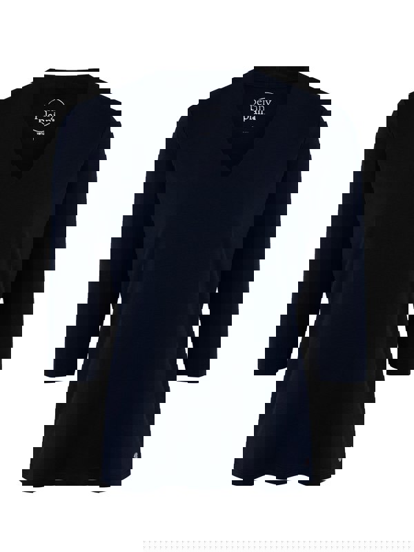 The perfect wardrobe essential. This tops comes in beautiful navy and features three quarter length sleeves, a double layer front and a metal tab.