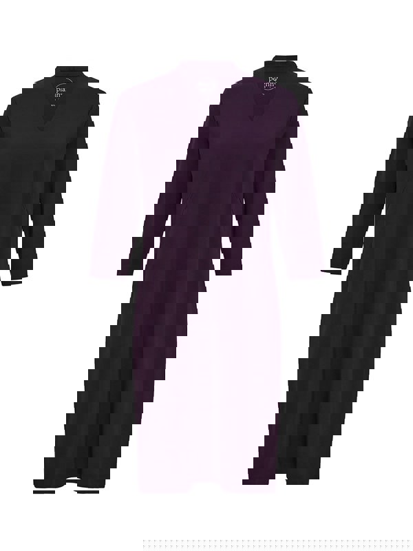 Every woman needs a staple dress! Our blackcurrant high back dress is flattering with a deep V-neckline, angled waist darts and half sleeves. The dress also has pockets!