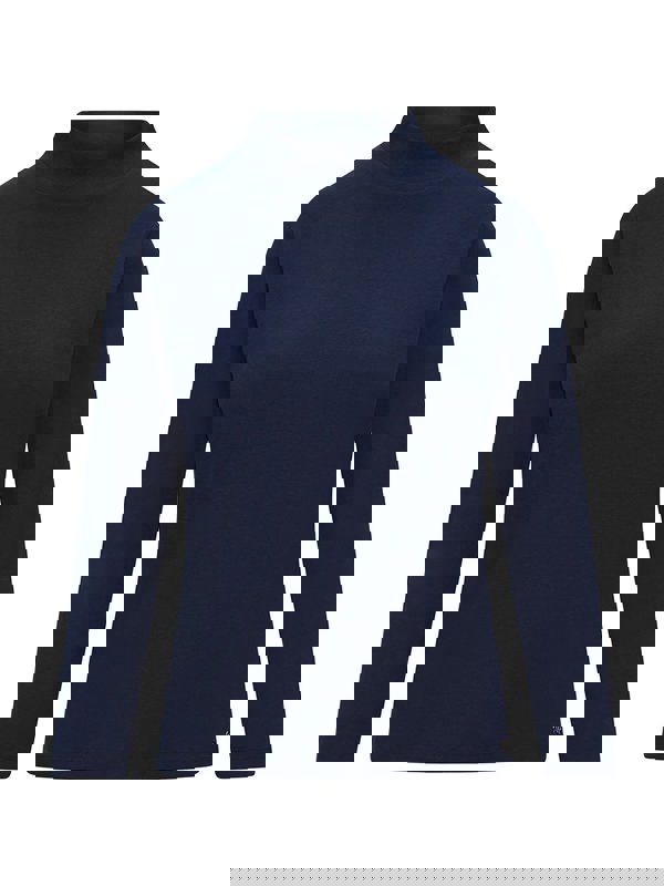 Made with soft ribbed jersey , our high neck essential features a full length sleeve in a French Navy color, perfect to keep you stylish and warm!