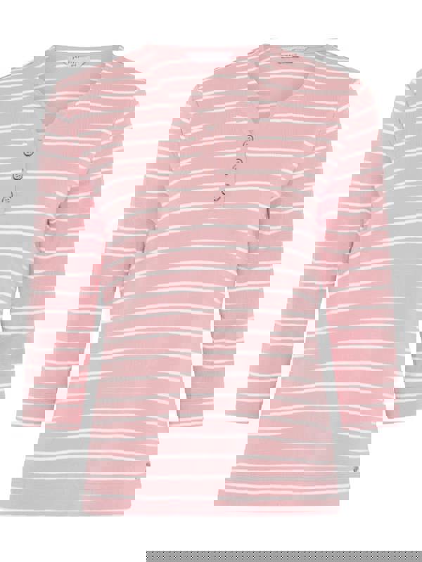 Our French Dusk/Ivory Notch Neck stripe top is a stylish choice for smart-casual days. It's cut in a flattering shape, with a neat notch neckline 3/4 length sleeves. The versatile piece is complete with a smart 3-button placket.