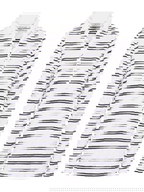 Our Ivory/F.Navy yarn dye stripe Henley top is a stylish choice for smart-casual days. It's cut in a flattering shape, with a neat solid dye collar and notch neckline and long sleeves. The versatile piece is complete with a smart 3-button placket.