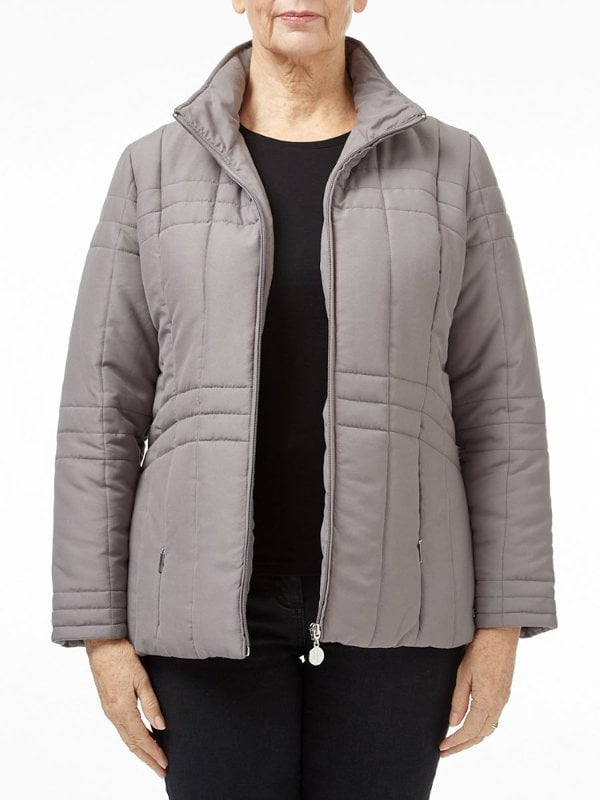 Essential for this winter and autumn season, our mink grey quilted jacket feature dual front zipper pockets and two inner pockets. It also features a high collar zip up front to keep you warm and toasted on cold days