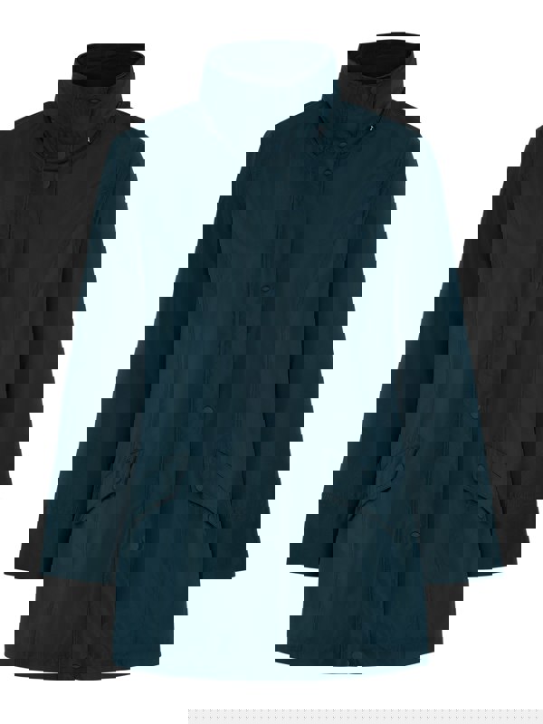 Feel nice and warm with this statement peacock raincoat. It comes in beautiful colours with long sleeves, a concealed hood and branded printed lining. It also features pockets and textured poppers.