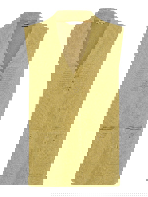 Elevate your wardrobe with the exquisite Ribbed Button Gilet in pear green, a sophisticated layering piece that seamlessly combines elegance and comfort.