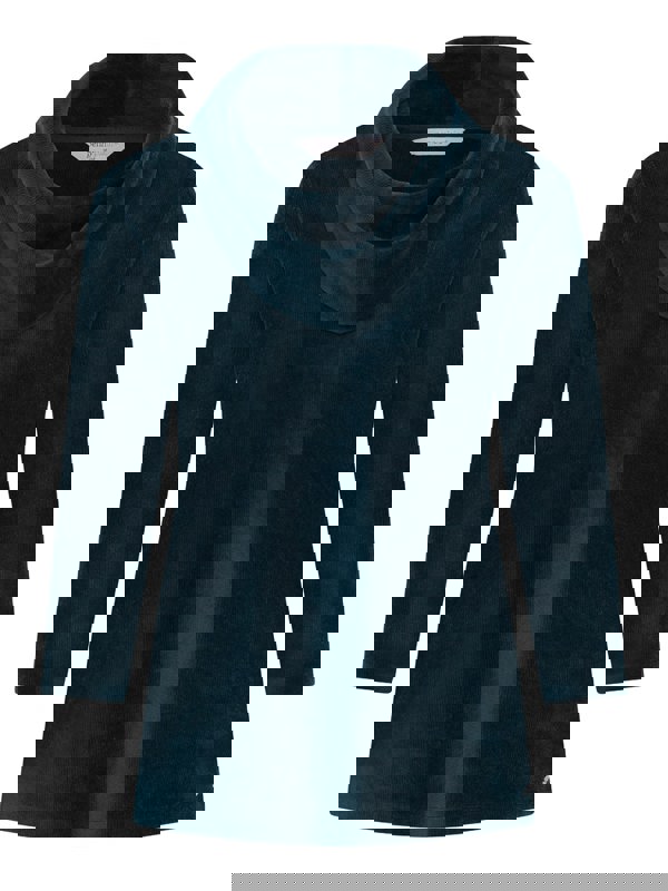 Our penny plain ribbed velour essential peacock cowl neck top features side slits, a metal tab and 3/4 length sleeves. The prefect top for your autumn wardrobe.