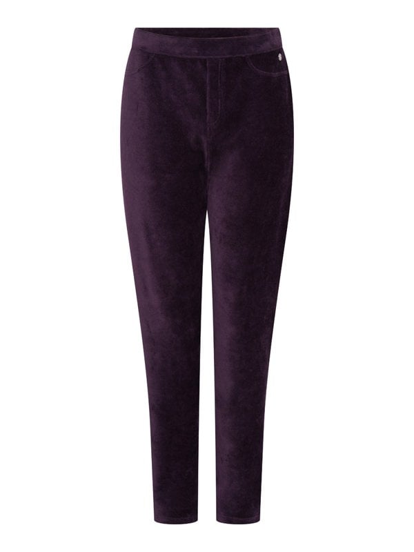 Stay comfortable this autumn and winter with our soft velour pull on trousers. The blackcurrant coloured trousers features front pockets, metal tab and elastic waistband. Perfect for day to evening wear. Also available in short length.