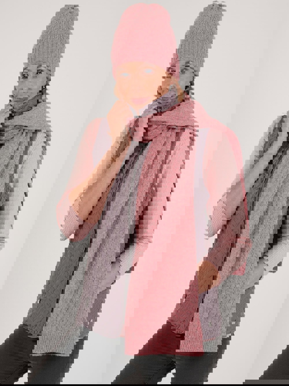 Enjoy even the coldest days in style with our Knitted Scarf. The accessory features a cable pattern in recycled polyester and elastane for comfort, and its aesthetic appeal is matched by its durability and resilience. Pair with our matching hat.
