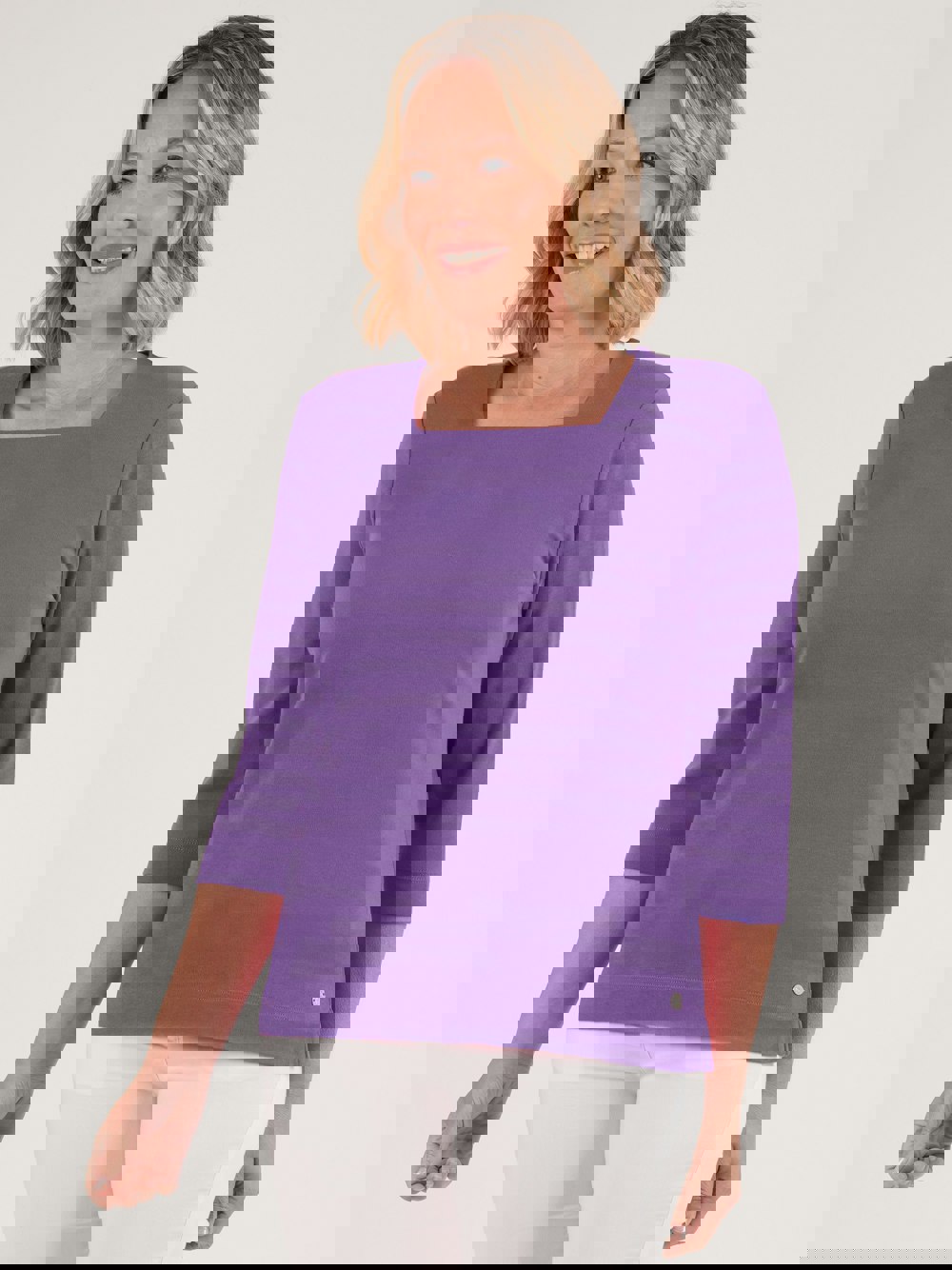 Bring a contemporary touch to your wardrobe of versatile separates with our Amethyst soft jersey top. It's cut in an easy fit, with a flattering square neckline and 3/4 length sleeves. Your new go-to top for all occasion's