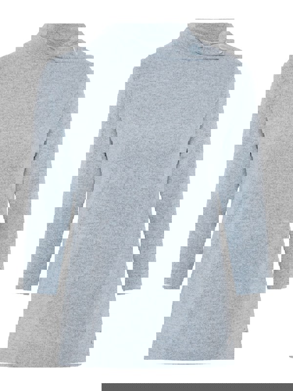 Featuring a flattering split turtle neck, the top is curated with our special viscose/poly blend fabric with a hint of stretch for comfort, in a beautiful shade of glacier and completed with our classic signature brand metal tab detail.