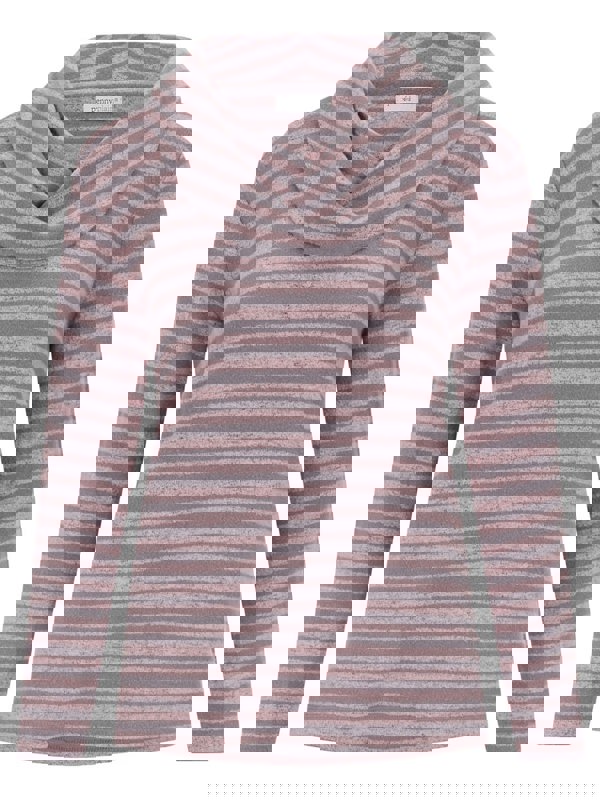 Made in a beautifully brushed soft fabric, it will keep you stylish and warm! Our cowl neck top in striped dusk and flint colour features full length sleeves, side slits and metal tab at the hem.