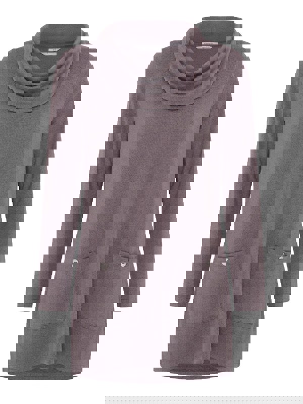 The perfect wardrobe addition this season. Featuring cowl neck, long sleeves and two front buttoned pockets in a beautiful taupe brown shade.
