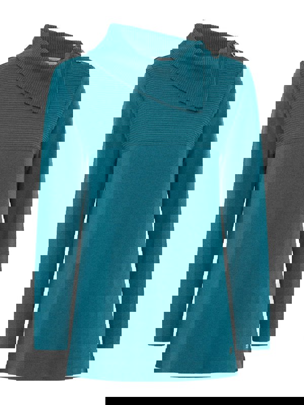 Made with the softest brush jersey fabric in a dragonfly green shade, curated with a ribbed texture panel yoke, this top comes with a side neck zip detail, cowl neck, and featuring long sleeves.